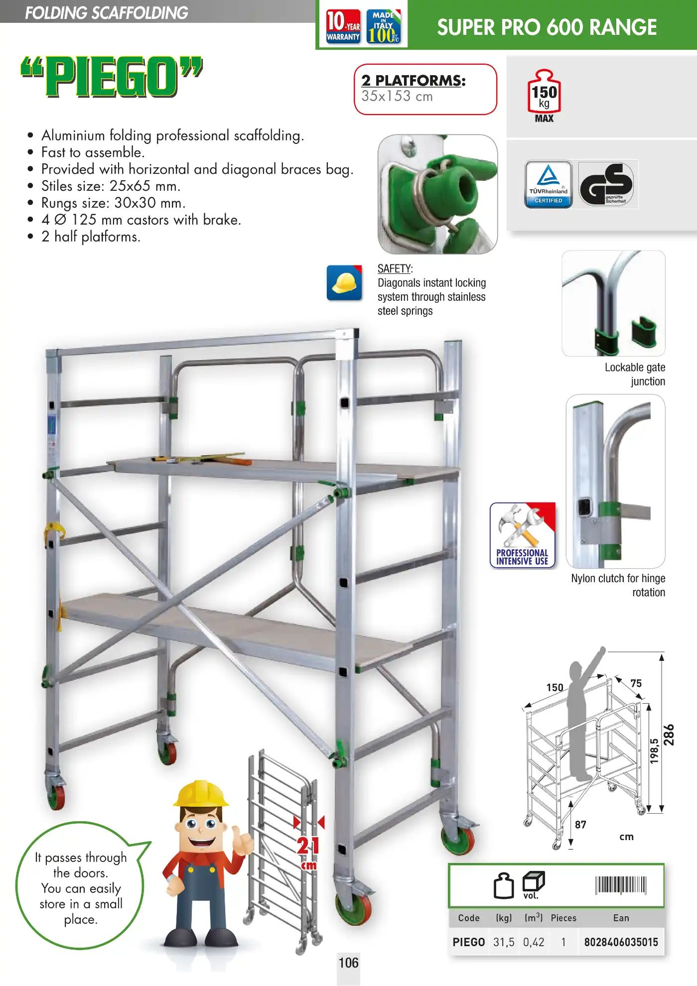 Cu schela pliabilă PIEGO, lucrările la înălțime devin sigure, rapide și eficiente. Alegeți calitatea italiană pentru fiecare proiect!