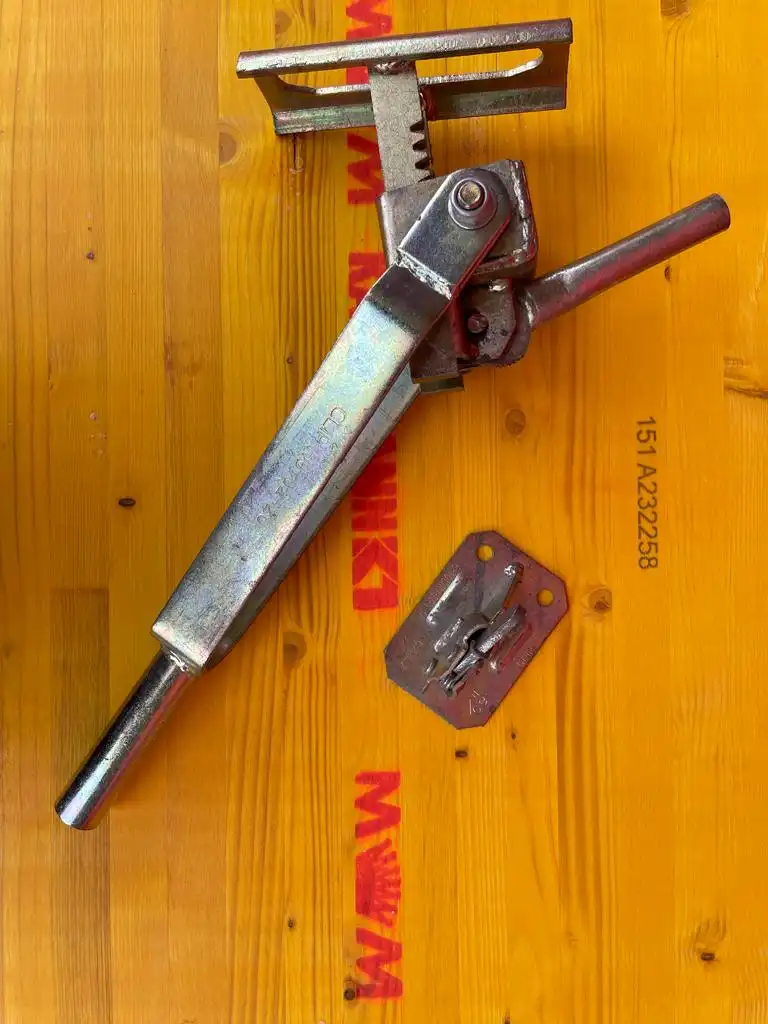 Tensionatorul pentru blocatori cu arc este utilizat în lucrările de cofrare realizate cu panouri tego, panouri tristrat sau cofraje din scândură, fiind un accesoriu esențial pentru montajul corect al blocatorilor cu arc.